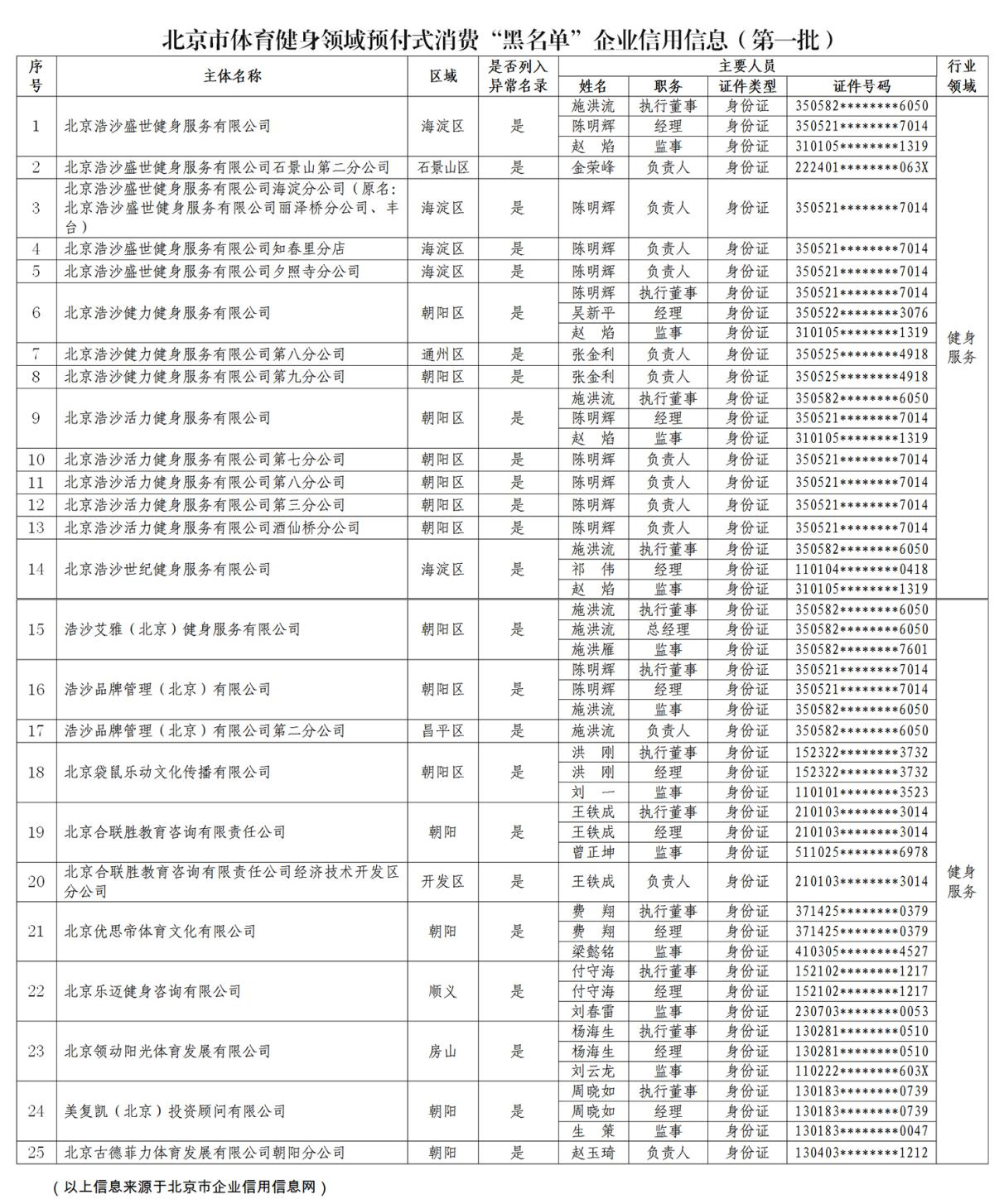 近日,北京市体育局公布第一批北京市体育健身领域预付式消费“黑名单”企业信用信息,共25家北京市健身企业被列入“黑名单”。为维护市场公平竞争秩序,保护消费者合法权益,北京市体育局开展“整治预付式消费问题”专项行动。为进一步加强体育市场管理,规范体育健身服务预付式消费,保障广大市民参与体育健身消费的合法权益,维护首都体育事业和体育产业繁荣与稳定。
